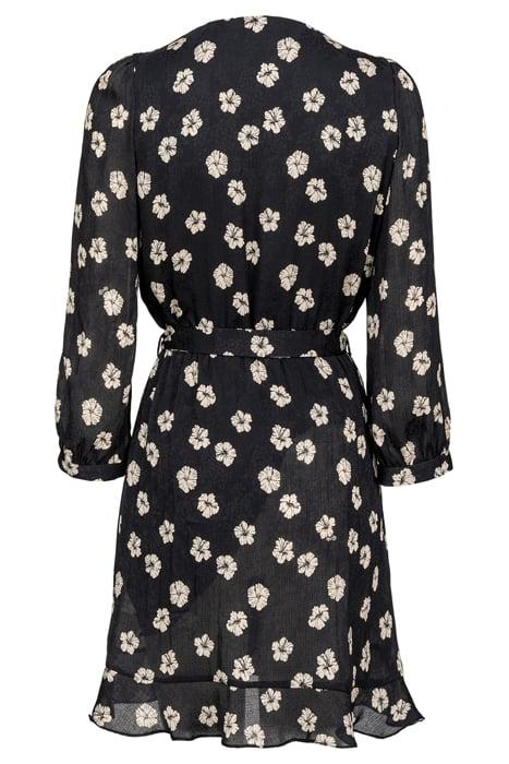 Short Wrap Dress In Jacquard Fabric With An All-Over Graphic Floral Print. Crossover V-Neckline, 3/4 Sleeves And A Ruffled-Hem Mini Skirt. Complete With Matching Belt In The Same Fabric, Which Fastens At The Waist. - Model Is 175Cm Tall And Wears A Size 40.