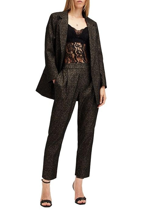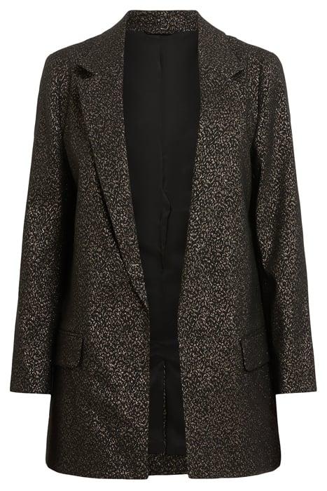 Shell: 61% Viscose 23% Polyamide 8% Polyester 5% Metallised Fibres 3% Elastane Lining: 100% Polyester (Recycled)