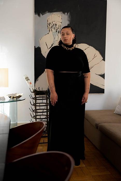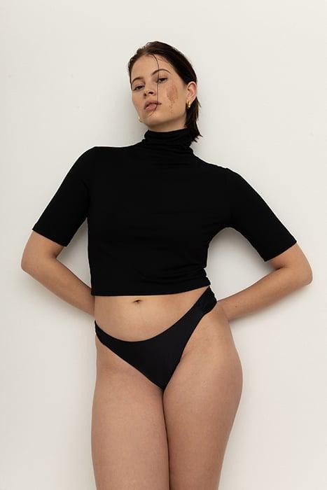 The Viveh Amber Top Is A Fitted, Slightly Longer Crop Top With A Turtleneck And A Mid-Length Sleeve.