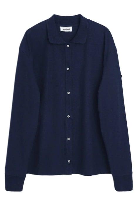 Andy Is A Long-Sleeved Polo Cardigan. Ribbed Cuffs And Collar. Coroso Buttons At Front Placket. Embroidered Soulland Logo Patch On The Left Sleeve. Made In Boucle Jersey