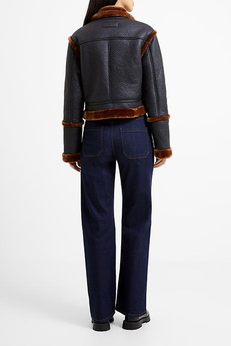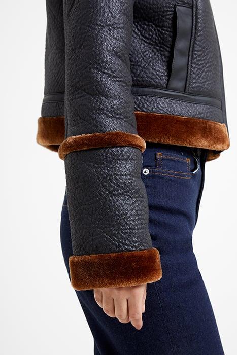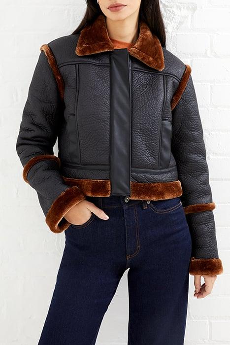 BELEN FAUX FUR L/S CROP JKT BLACK