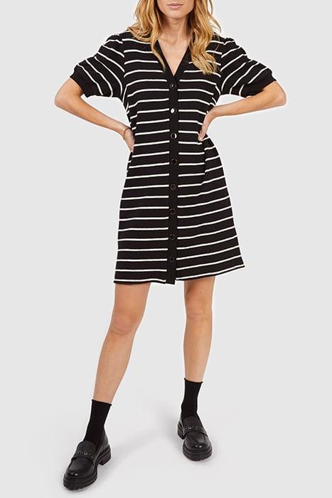 BLACK AND ECRU KNIT BUTTONED SAILOR-STRIPE DRESS
