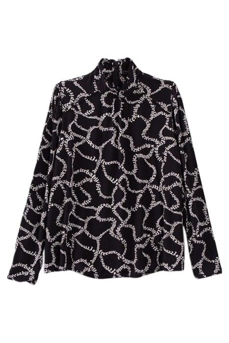 BLACK BLOUSE WITH ECRU SLALOM PRINT BLACK