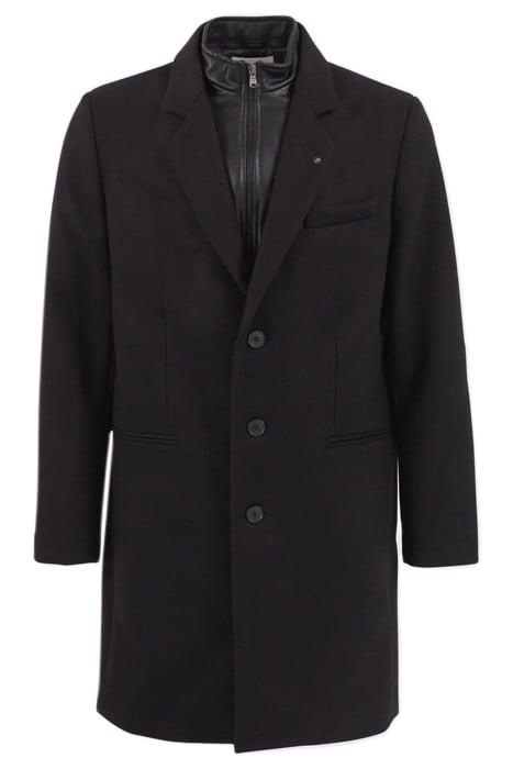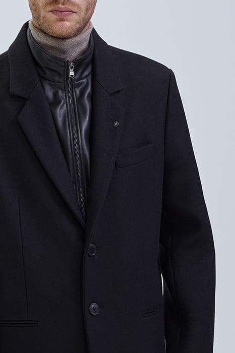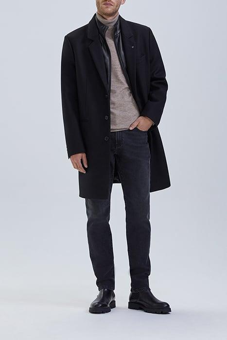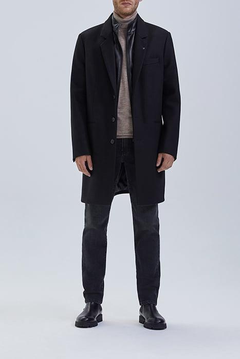 Men’S Black Coat Wide Suit Collar, Long Sleeves 1 Chest Pocket, 2 Piped Side Pockets, 1 Inside Pocket With Press Stud Decorative Buttons On Sleeves, Ikks Button On Left Cuff Leather Facing, Zip To Detach Logo Jacquard Satin Lining, Buttons To Fasten