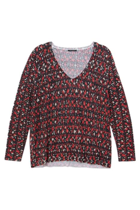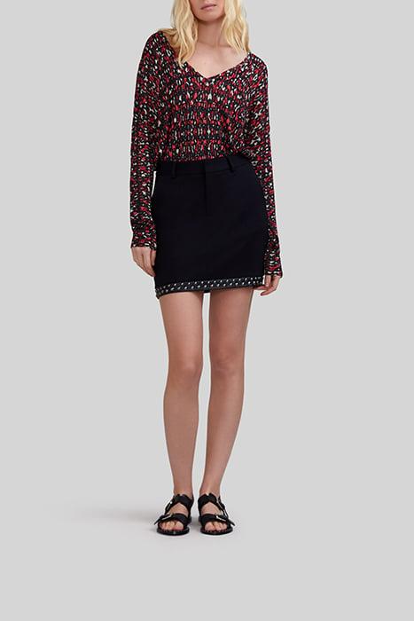 BLACK FINE KNIT SWEATER WITH IKAT PRINT