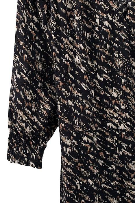 BLACK FUSAIN PRINT WRAP DRESS BLACK
