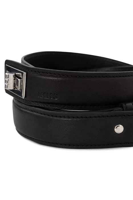 BLACK LEATHER BELT WITH ROTATING BUCKLE