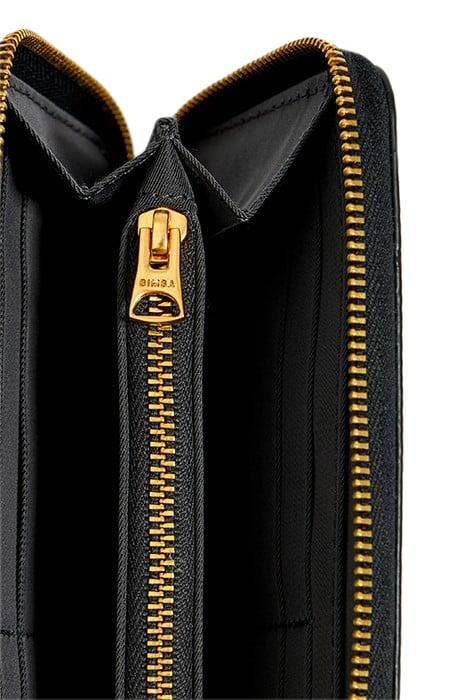 Leather Wallet In Black. Book-Style Model With Zip Fastener And Metal Pull. Coin Purse And Interior Card Holder. Exterior Customized With Logo Print. 100% Recycled Polyester.