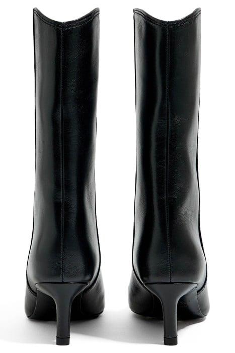 Black Leather Gaucho Boot With Narrow Square Toe. Leather Lining With Logo-Embossed Insole. Custom Sole.