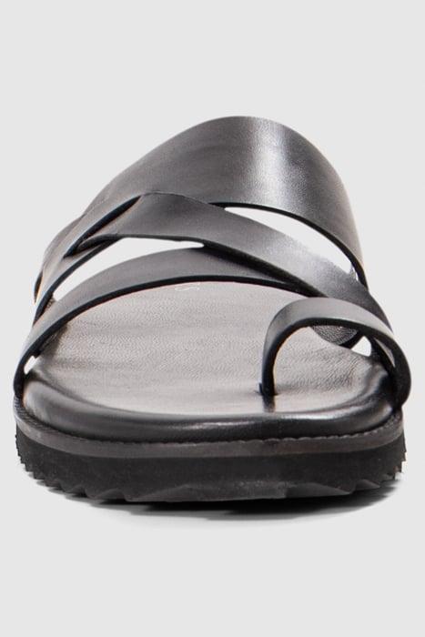 BLACK LEATHER MULES WITH FANCY STRAPS