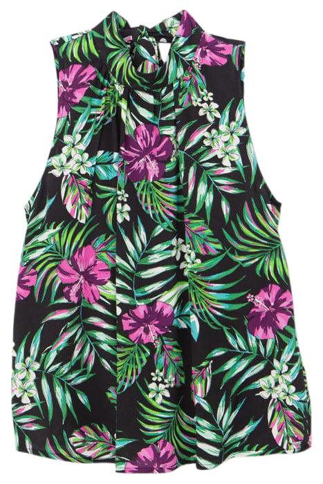 BLACK LENZING™ ECOVERO™ TROPICAL PRINT TIED TOP
