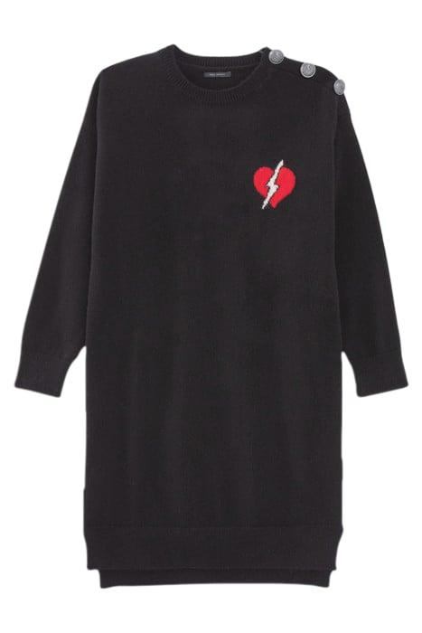 BLACK LIGHTNING HEART VISUAL KNIT SWEATER DRESS