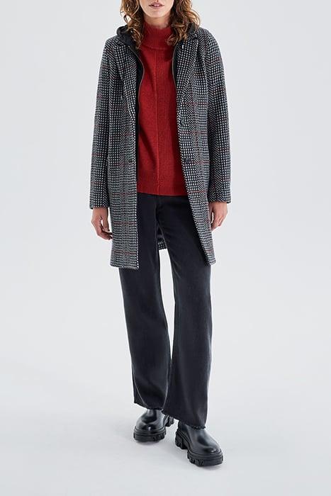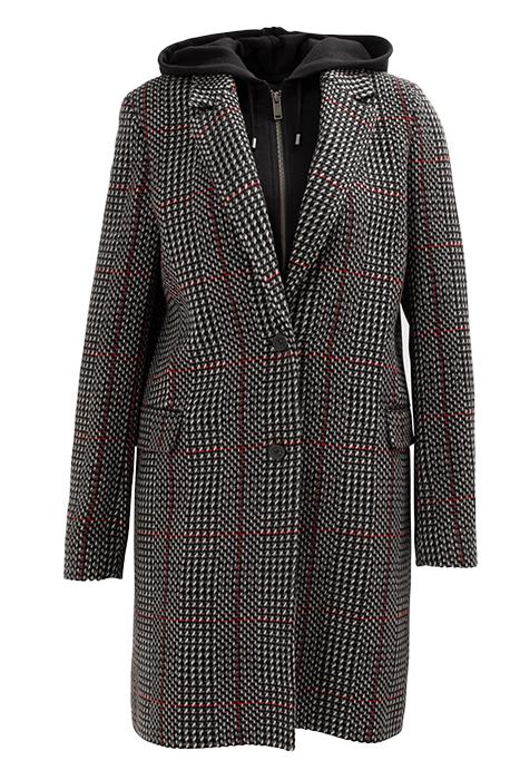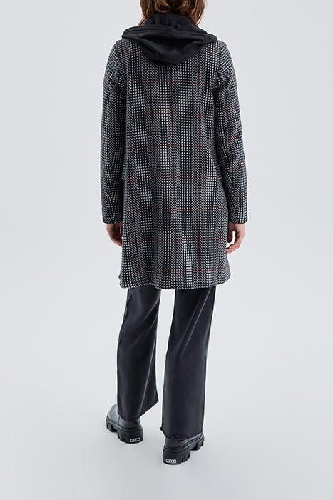 This Casual-Chic Coat For Women Combines A Houndstooth Wool Blend With Detachable Hooded Sweatshirt Fabric Facing. Wear Loose.