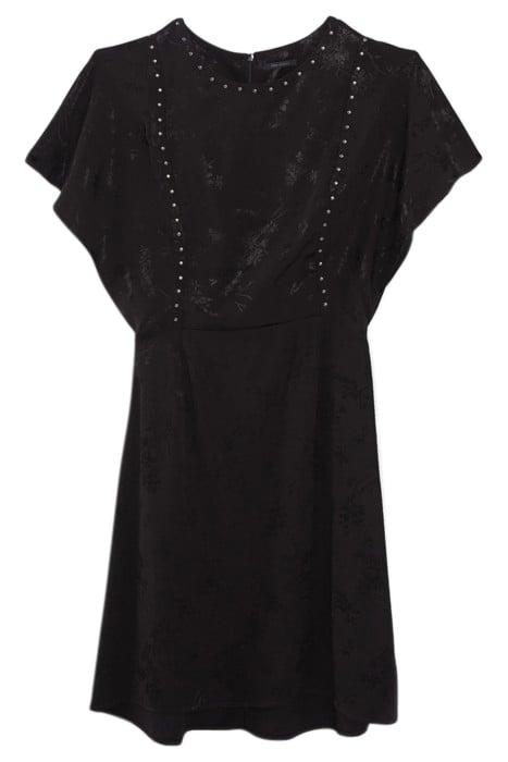 BLACK PLANT MOTIF JACQUARD STUDDED DRESS