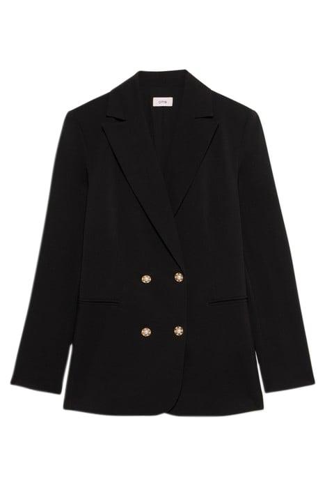 Blazer In Stretch Technical Fabric, Double-Breasted With Jewel Buttons, Flap Pockets At The Front And Stretch Fabric Lining.