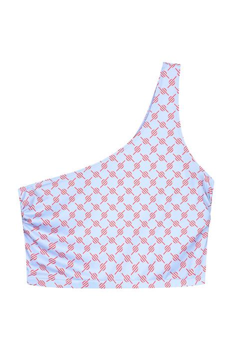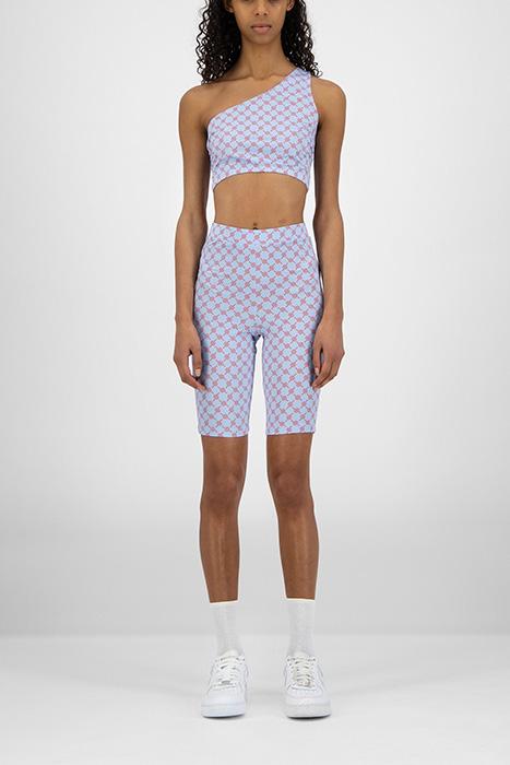 Get the athleisure look with this one-shoulder crop top with medium support for low impact activities like yoga. Featuring an allover 'barbed wire' monogram print reminiscent of luxury-fashion houses, and crafted from a soft and stretchy synthetic blend, this sports bra looks as good as it feels. Pair with matching Kycling shorts for a luxurious athleisure aesthetic.