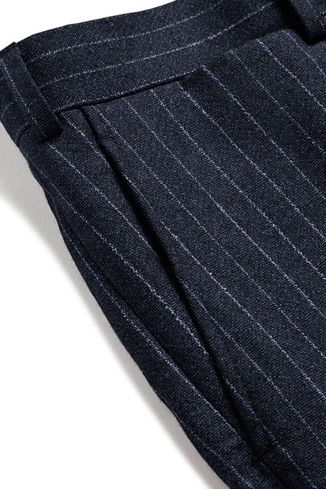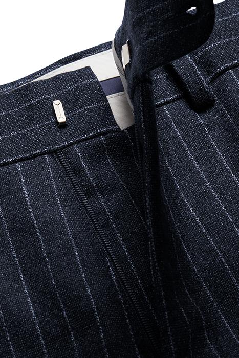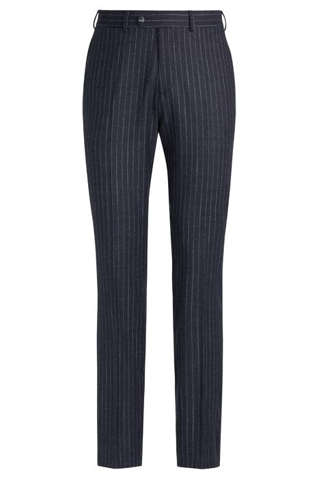 A Classic Pair For Any Occasion, These Blue Flat Front Trousers Are Tailored To A Slim Fit With Belt Loops. Cut From Crease-Resistant Traveller Wool By Cerruti, They Feature A Strong Chalk Stripe And Are Available On Their Own Or As Part Of A Suit.