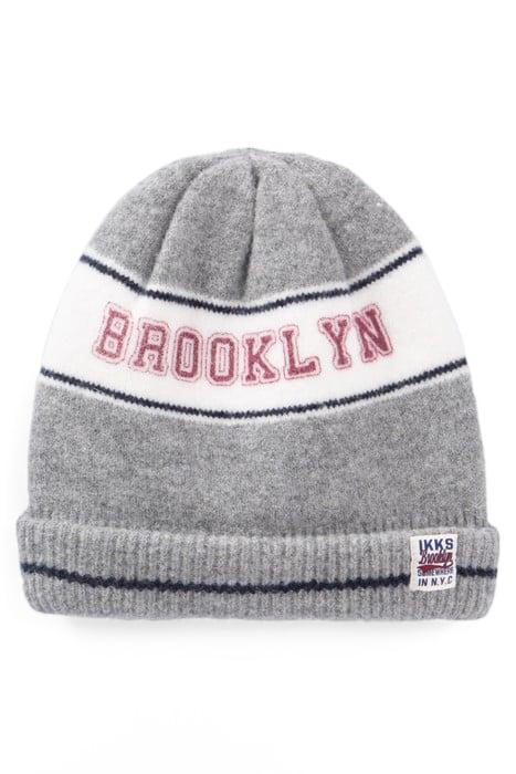 BOYS’ GREY SLOGAN JACQUARD KNIT BEANIE