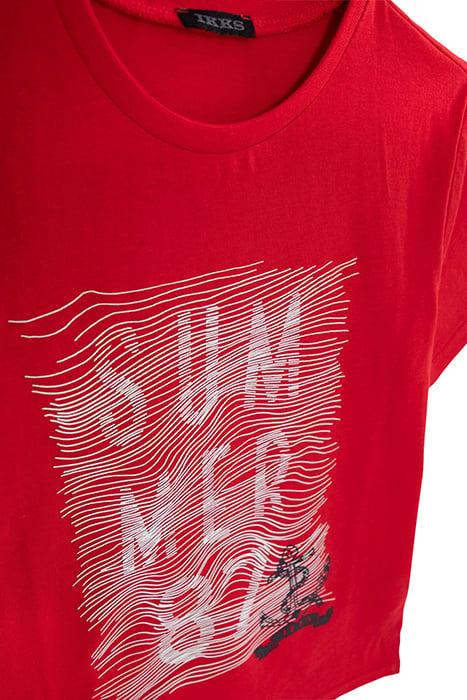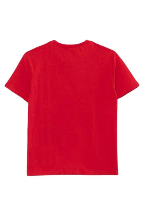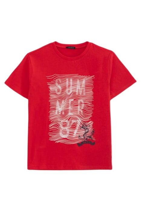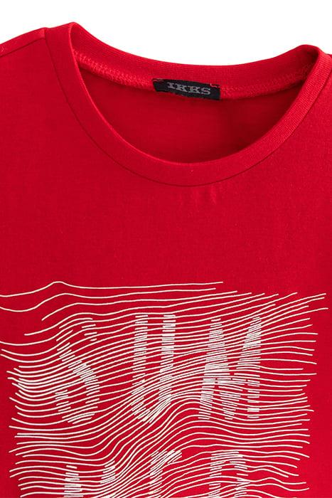 BOYS' RED ORGANIC COTTON T-SHIRT WITH RUBBER GRAPHIC LINES