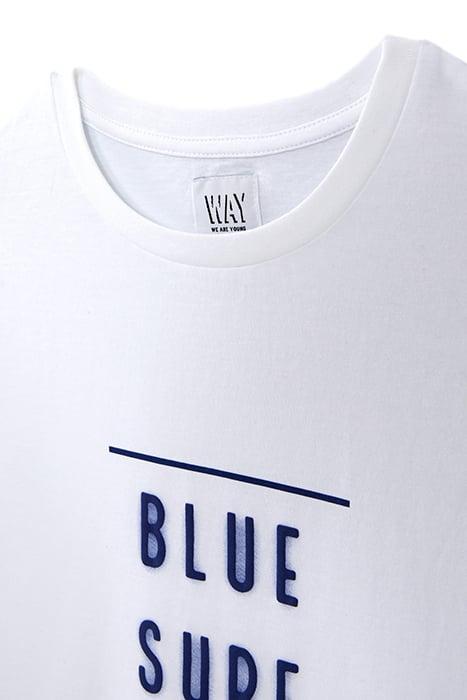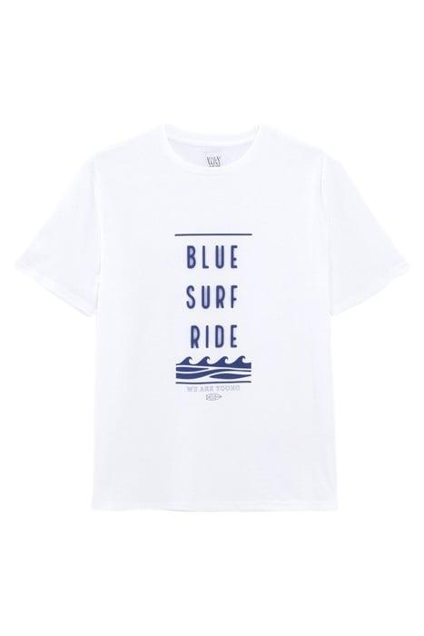 BOYS' WHITE T-SHIRT WITH RUBBER SLOGAN AND WAVES