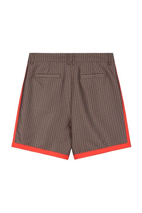 A tailored short constructed from our proprietary custom jacquard fabric to give a more casual look and feel. Formal details like front creases and a small ticket pocket contrast again the vividly patterned fabric with red edging and hems. The finishing detail is a small seasonal label woven at the hem to give an unfinished aesthetic. Pair with matching scarf and Kaffo pieces for a fully patterned summer layered look.