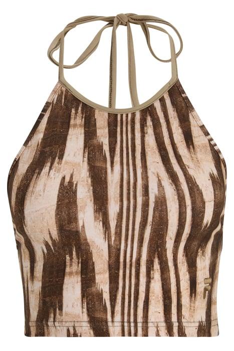 CALTAGIRONE CROPPED TOP BROWN ABSTRACT ETNO AOP