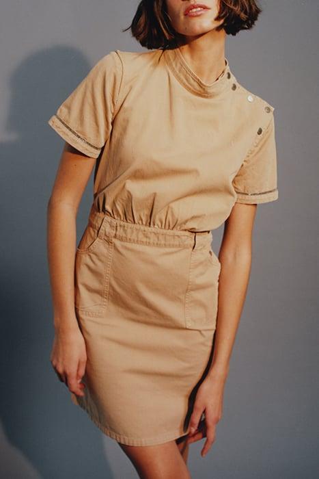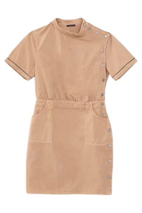 CAMEL DENIM DRESS, PRETTY BRAID, SIDE PRESS STUDS