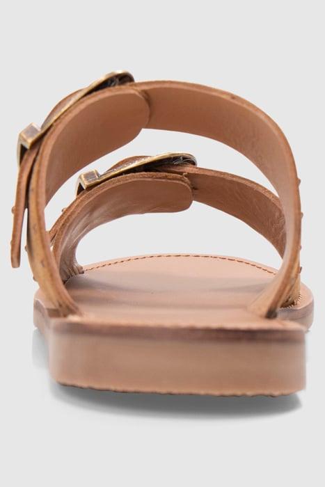 Women’S Camel Flat Mules Suede Upper, Studded Decor Leather Lining, Round Toes, Non-Slip Soles Folk-Style Buckled Double Strap To Fasten Heel Height: 1.3 Cm