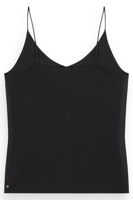CAMISOLE WOVEN FRONT JERSEY BACK BLACK
