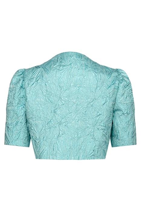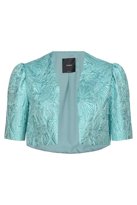 Cropped Shrug In Laminated Jacquard Fabric, With Striking Geometric-Style Design. No Fastening, Slightly Puffed Short Sleeves And Small Welt Pockets At The Sides. Lined. - Model Is 175Cm Tall And Wears A Size 40.