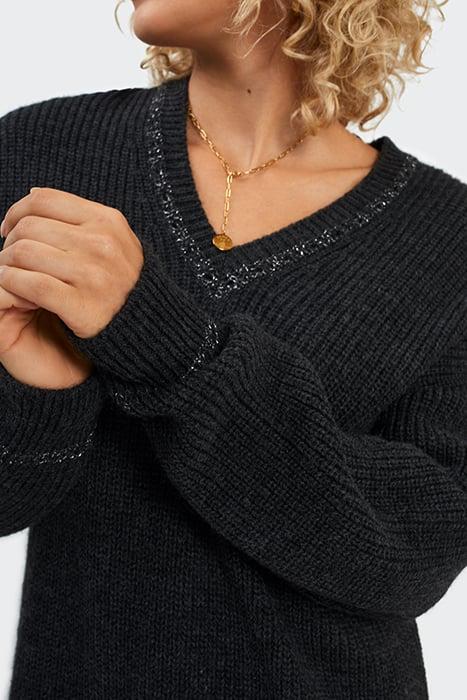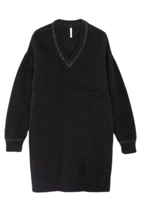 CHARCOAL LUREX KNIT V-NECKLINE DRESS