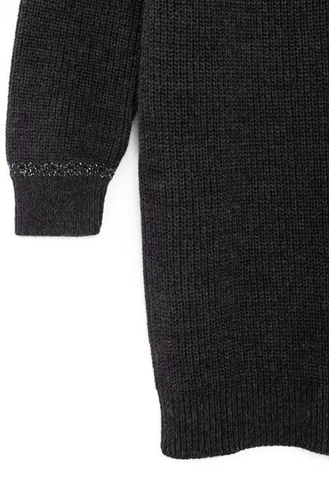 Charcoal Straight Dress . V-Neckline, Long Sleeves . Knit With Lurex Detail On Neck And Cuffs . 1X1 Ribbing On Neck, Cuffs And Hem . Length: 87 Cm.
