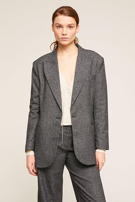 Viscose Blend Yarn-Dyed Chequered Fabric Blazer With Tiny Sequins,Peaked Collar, Single-Breasted Fastener With Visible Covered Button