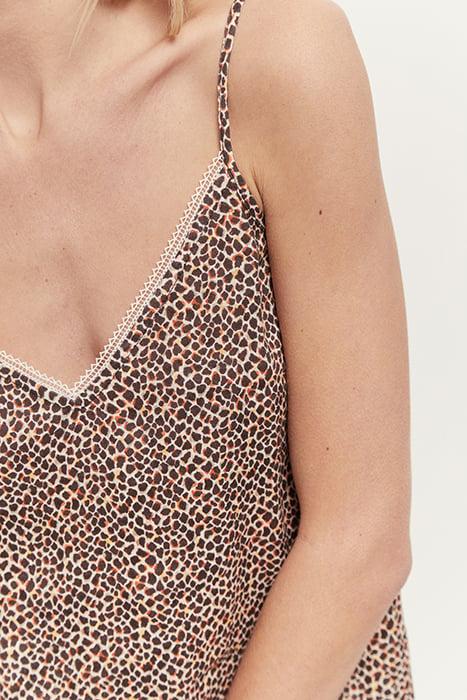 Straight Cut / V-Neckline / Thin Adjustable Straps / Linen And Cotton Blend, With Exclusive Mini Giraffe Print / Lace Trim At Neckline