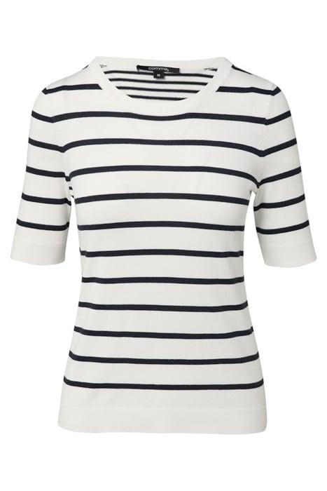 Details: striped detail; Fabric: fine knit; Fit Overall: regular fit; Neckline: round neckline; Pattern: striped; Sleeve: short sleeves