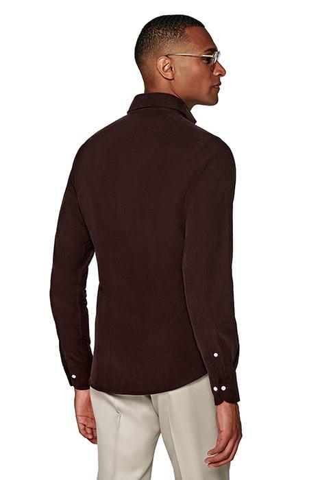This Textured Dark Red Shirt Is Tailored To A Slim Fit With A Single Cuff And Small Widespread Collar.