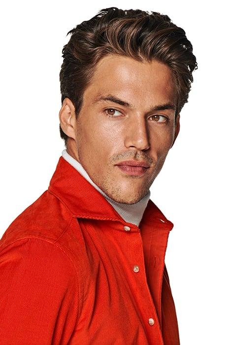 This Textured Orange Shirt Is Tailored To A Slim Fit With A Single Cuff And Small Widespread Collar.