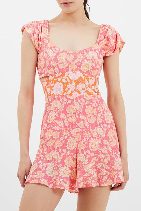Our Cosette Verona Cut Out Romper Is A Cut Above The Rest. This Sweet Summer Style Adds A Bold And Beautiful Floral Touch To Your Wardrobe In A Short Silhouette Complete With A Mix Of Modern And Romantic Detailing. A Feminine Sweetheart Neckline Leads The Way To A Flower Print Body With A Contrasting Colour Waist, Introducing The Short Legs Complete With Playful Frill Hem. Contemporary Cut-Outs Compliment This One-Piece Wonder In Symmetry At The Sides And Back Whilst Hook And Eye Fastenings &Amp; An Elasticated Back Makes It A Secure And Comfortable Fit.