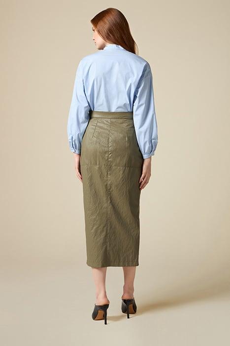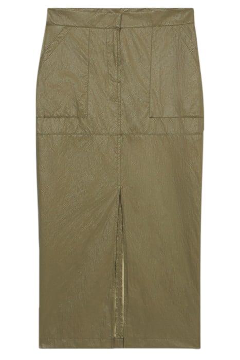 CRINKLED FABRIC MIDI PENCIL SKIRT GREEN