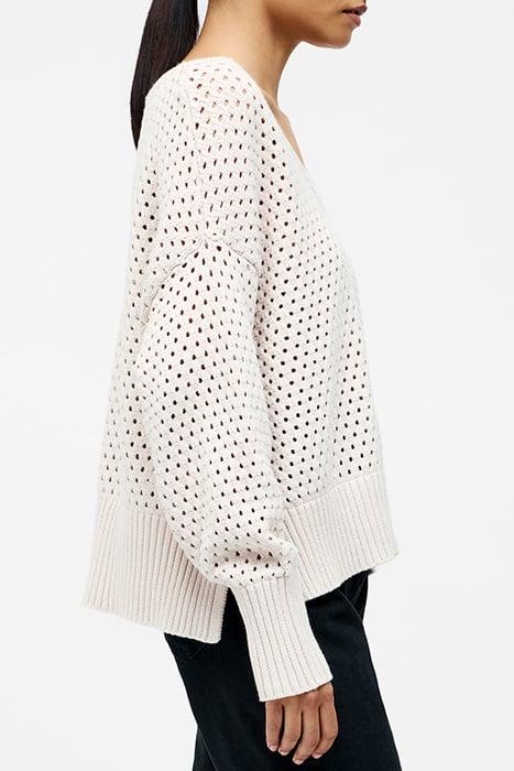 CROCHET KNIT V NECK SWEATER OATMEAL
