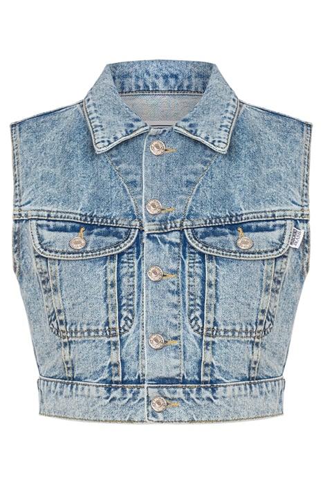 CROPPED VEST IN RECYCLED DENIM BLUE