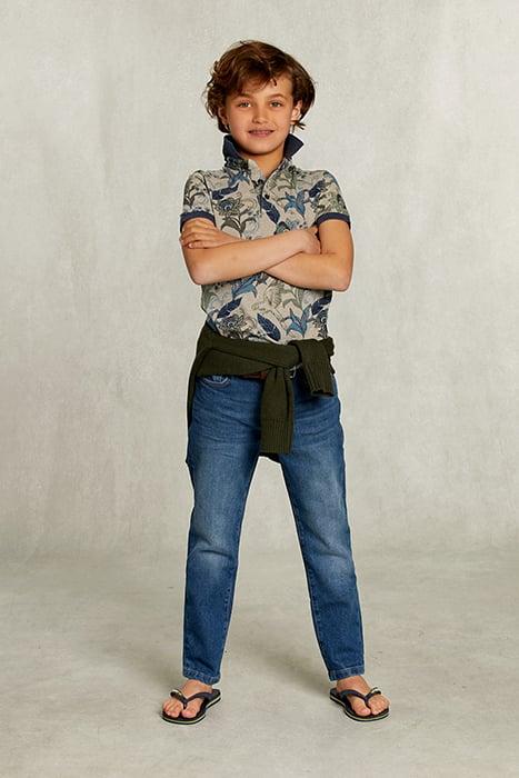 CUSTOM FIT FLORAL POLO EQUATOR MIX KHAKI