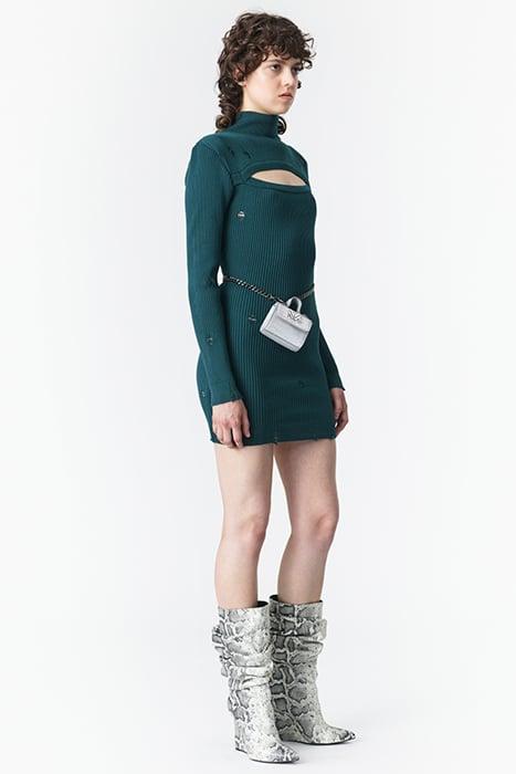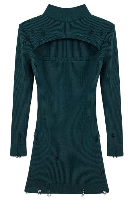 CUT-OUT MINI KNIT DRESS DARK GREEN