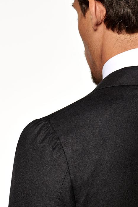 Completely Unconstructed For A Lightweight Wear, This Refined Dark Grey Lazio Suit Is Made From Pure, Ultra-Fine S170S Wool By The E. Thomas Mill. Tailored To A Slim Fit, It Features A Pleated Shoulder.