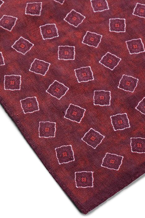 A Dark Red Graphic Print Pocket Square Woven In A Linen-Silk Blend By The Italian Mill Tsm.