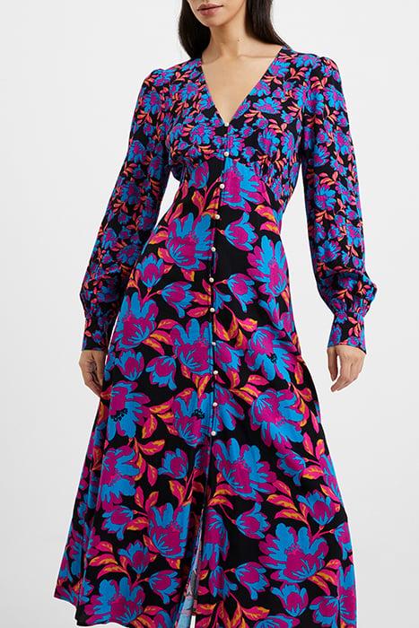 Brighten Up Your Staple Style This Season With The Help Of Our Darla Eco Anita Drape Midi Dress. Vividly Vibrant Flowers Flourish Across This Flattering Midi Silhouette Which Flaunts A Flirty V-Neckline Leading To Contrasting Buttons And Long Sleeves