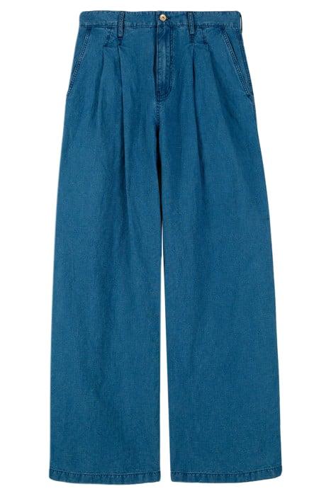The wide-leg style gives these jeans the cool look and feel of boyfriend jeans. Made from a linen-cotton blend with simple button details.