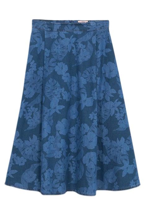 DENIM PATTERN EFFECT MIDI SKIRT BLUE