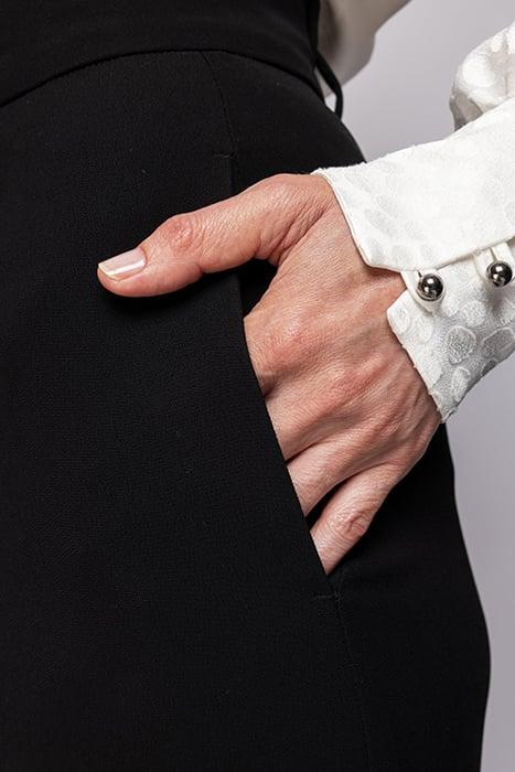 This item is made from viscose and crêpe elastane, which gives it beautiful, airy drape. Another advantage is that it is wrinkle-free.