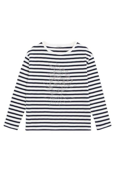 ECRU SAILOR-STRIPE T-SHIRT WITH STUDDED SKULL